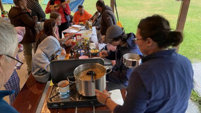 Vaříte-li v nějakých skupinkách, doporučuju vzít si kanystr na pitnou vodu, ať se tolik nenaběháte s petkou…
